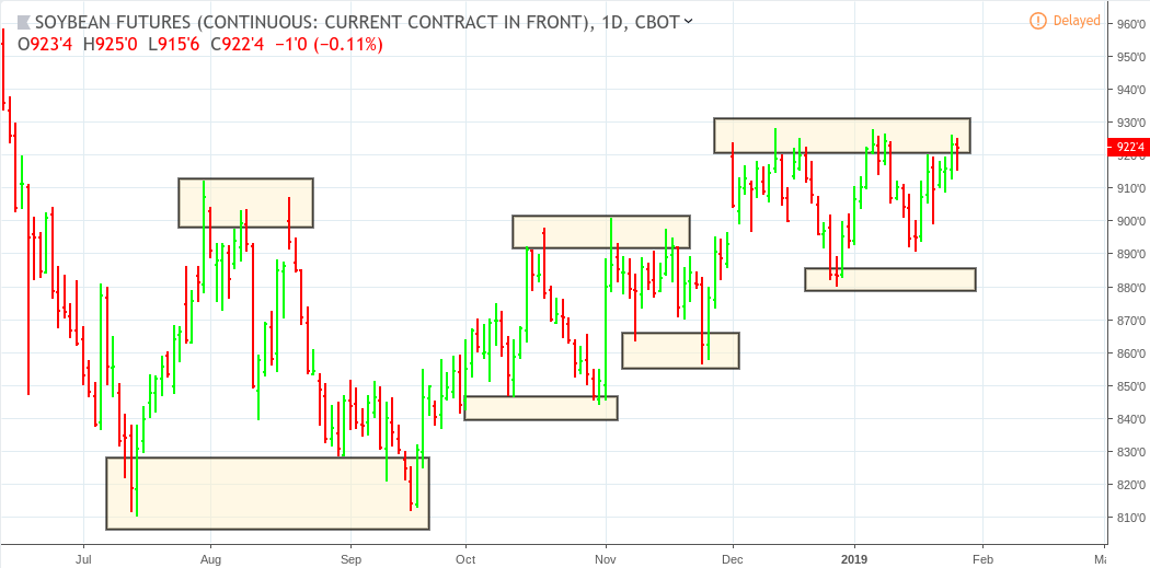 Soybeans (ZS continuous) June 13, 2018 to January 28, 2019
